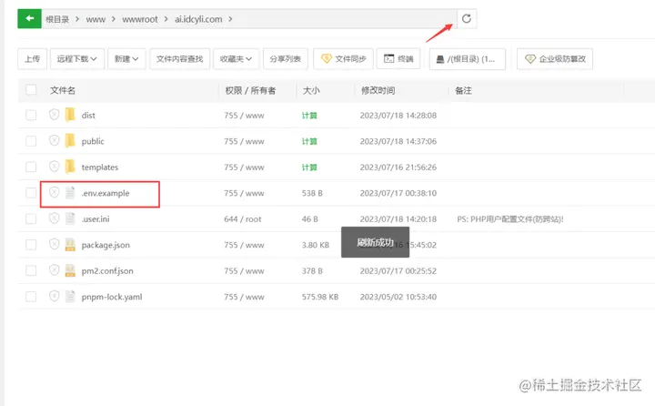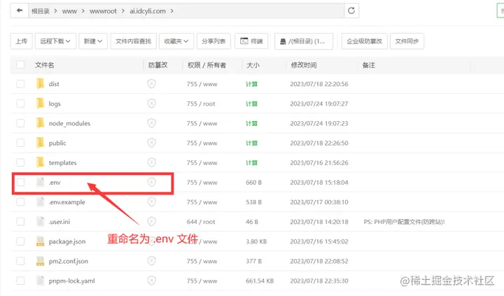 在宝塔直接双击.env.example文件编辑,或在终端vim编辑