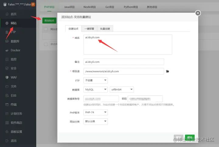 宝塔 - 网站 - 添加站点