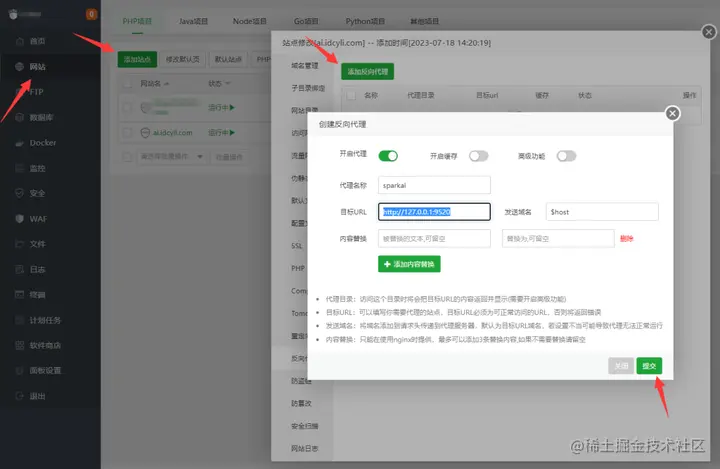 添加 9520 端口反向代理,宝塔安全需要开启该端口,不然无法访问