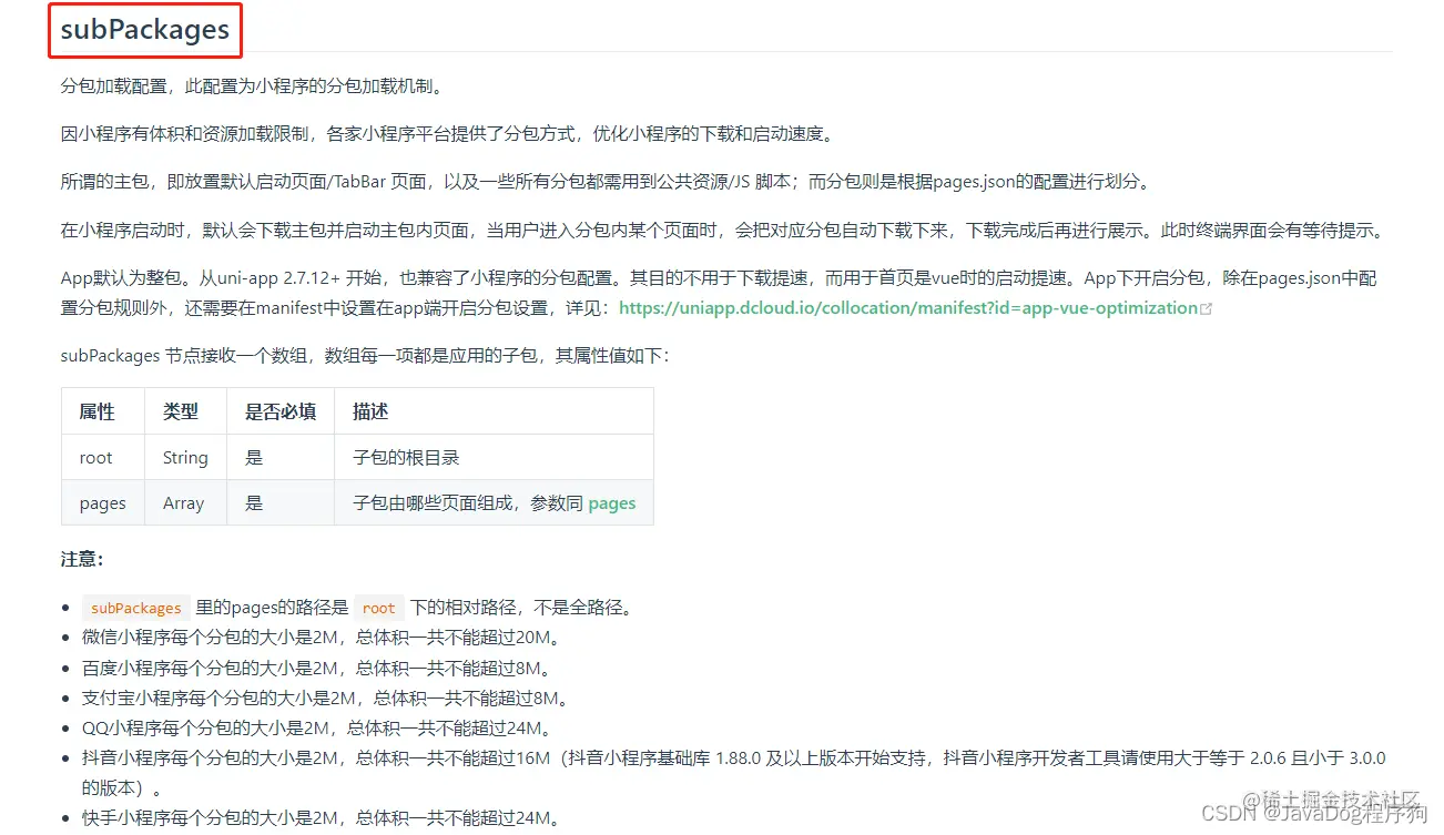 uniapp 分包文档: