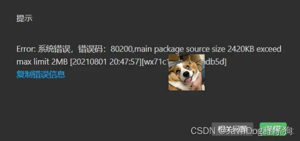 该大的不大,小程序包超出2M,无法上传发布