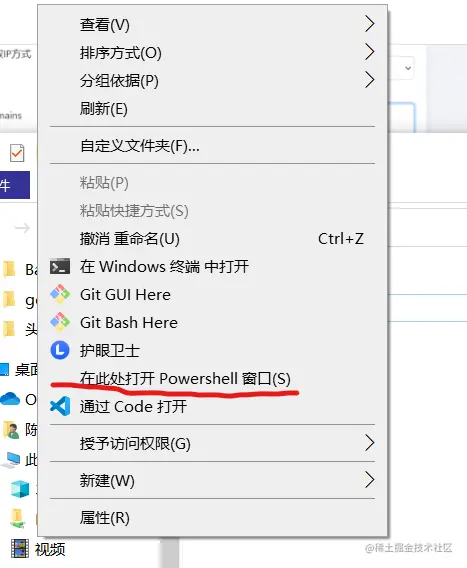 在软件所在目录按下 Shift加上鼠标右键,点击在此处打开Powershell窗口