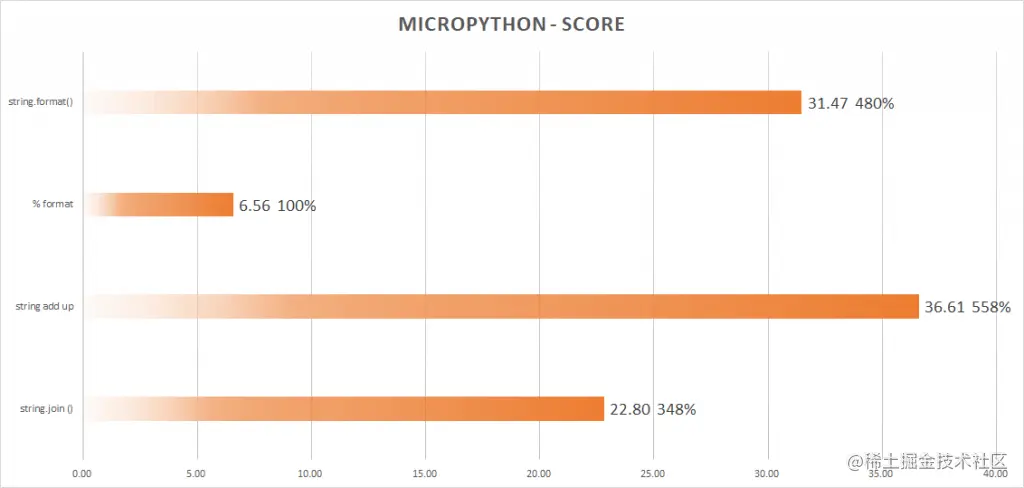 根据我的猜测, 在单片机中内存与CPU的交换速度非常慢, 因此如果能够有效的减少内存操作对计算速度是有非常大的提升的, 在其他的方式中, 传递\复制 了太多的无用内存和指针, 而 % format的方式则直接将数据带入到文本内, 减少了许多无用的内存交换.