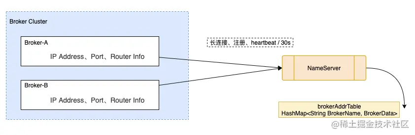 - 前面我们说了,Broker每30s对NameService发送一次心跳包给NameServer