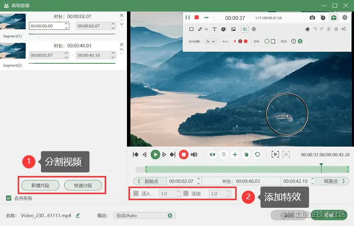 步骤3:录制完成后,您可以使用数据蛙录屏软件的 “高级剪辑” 功能进行视频剪辑、添加特效等操作。编辑完成后,保存视频并选择分享渠道,如社交媒体、视频平台等。