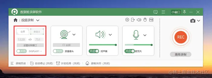 步骤2:在视频录制模式中,选择录制的区域,如全屏录制、自定义录制等,配置好录制选项后,点击 “录制” 按钮进行录制。