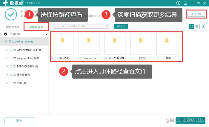 提示:如果不清楚文件路径,也可以按类型进行选择。没有出现需要的结果,建议点击【深度扫描】;