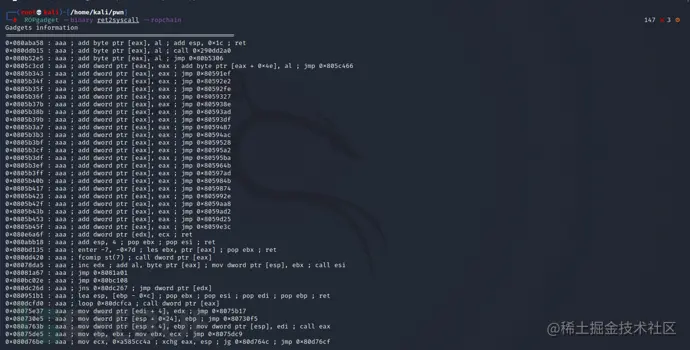 ROPgadget --binary ret2syscall --only 'pop|ret' | grep 'eax'