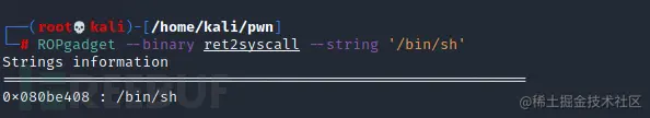 ROPgadget --binary ret2syscall --string '/bin/sh'