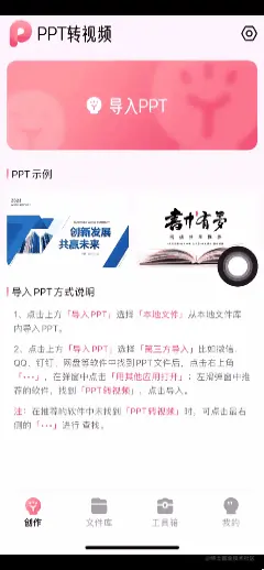 用户可以随时随地使用手机从本地文件或第三方平台导入PPT并对其进行转换。