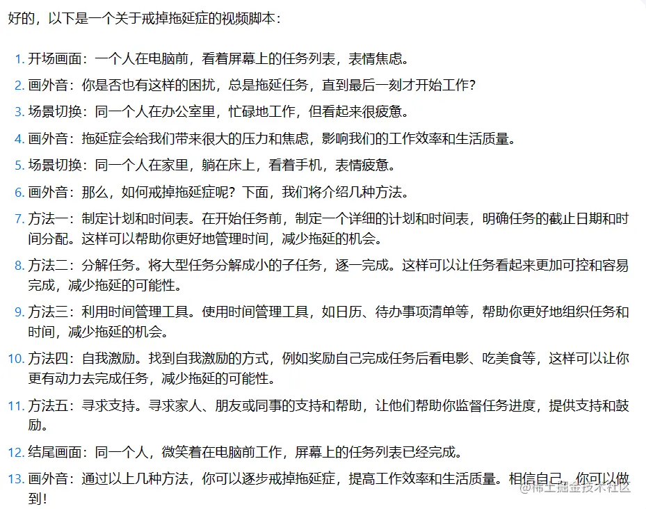 比如一个关于戒掉拖延症的视频脚本。