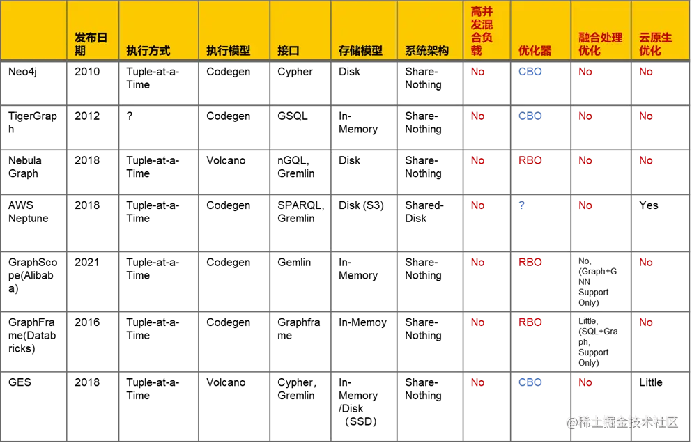 上表列举了主流图数据库系统的分析情况,我们的观点是: