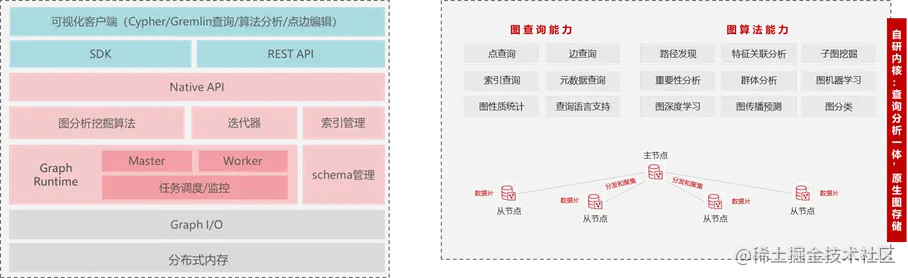 总结来说,图数据库和图引擎面向广泛的使用场景,提供的能力一定也是从基础往高阶发展的,技术洞察中标识为红色的部分,也是我们认为提供高阶能力所必备的差异化竞争力。