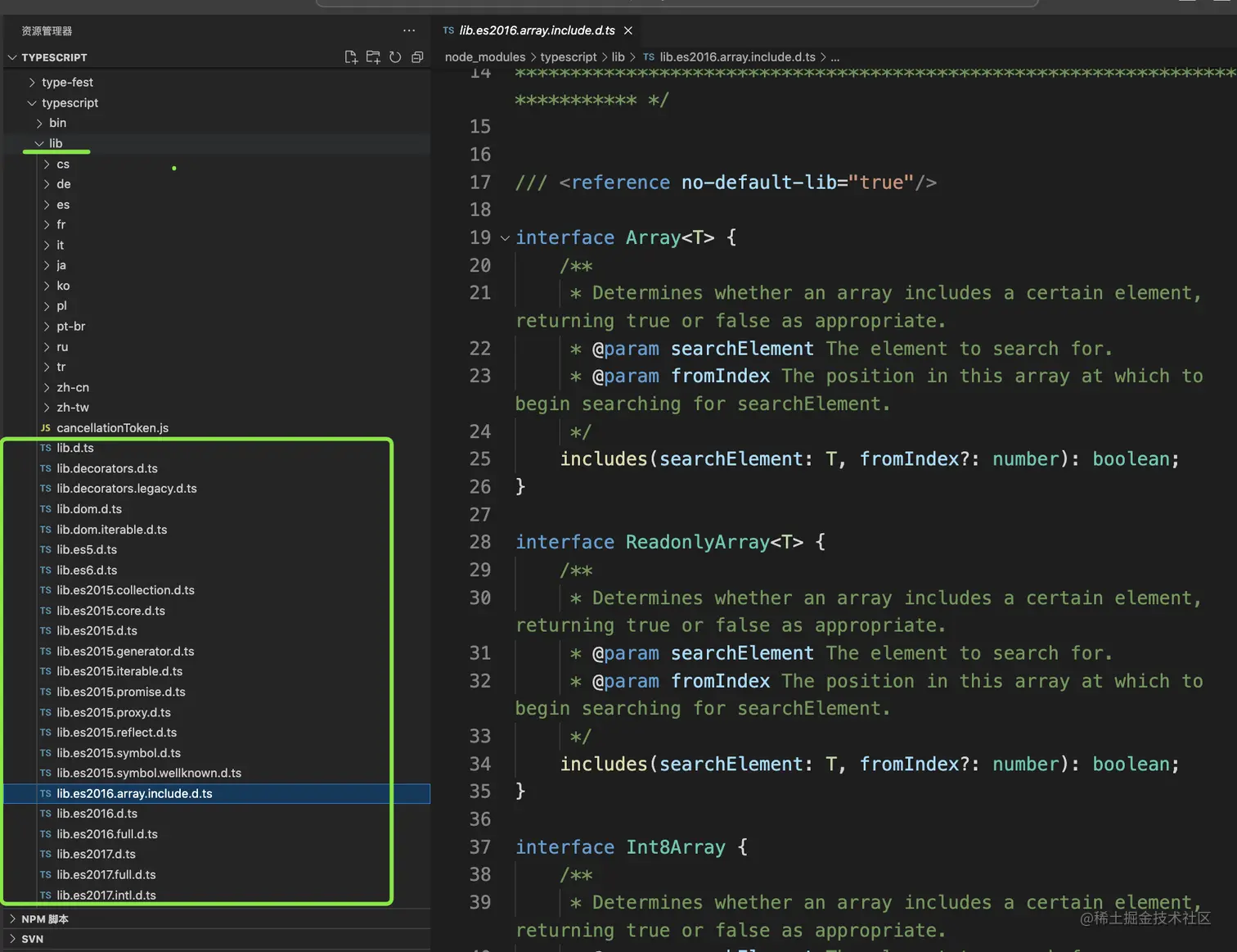 就是这一大坨, 可以看到, 基本上就是一些常用的API的类型声明文件, 包括: dom、es等几个大类;