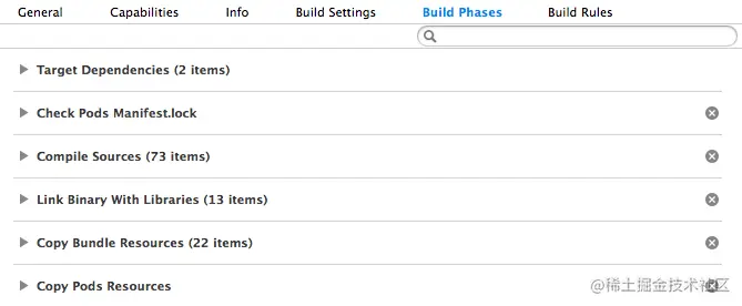 如果默认设置无法满足您的需求,您可以完全控制这些构建阶段。例如,你可以添加运行自定义脚本的构建阶段,CocoaPods 使用这些脚本可以完成额外的工作。你还可以添加额外的构建阶段来复制资源。如果你想将某些资源复制到特定的目标目录中,这将非常有用。