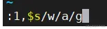 在底线模式下:输入 1,$s/string/replace/g 会将全文的 string 字符串替换为 replace 字符串。