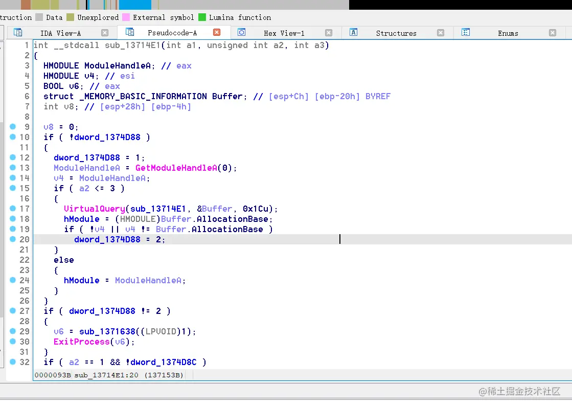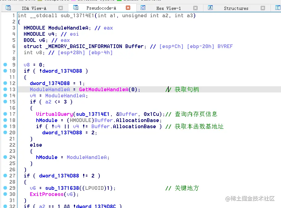 接下来拖到IDA中,根据之前OEP那里,找到关键位置: