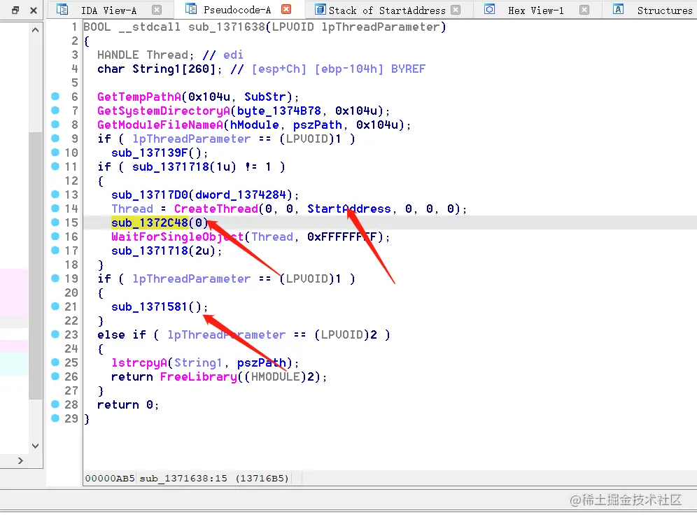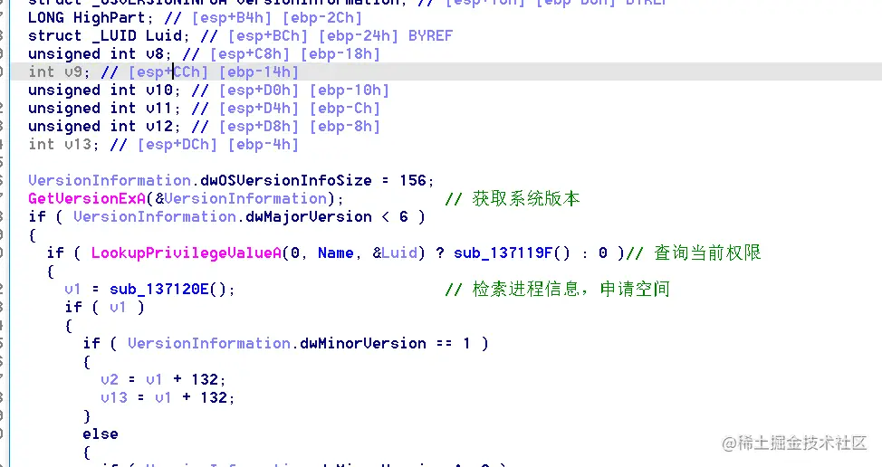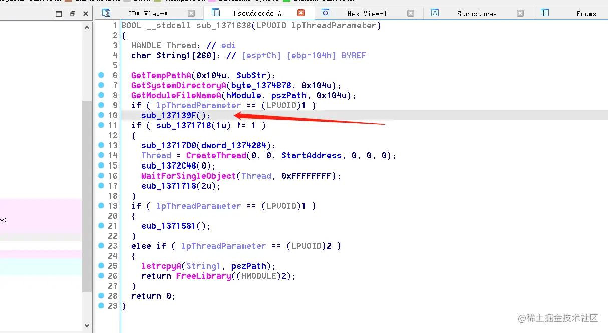 这里是获取临时文件夹路径,系统目录以及当前进程路径等,随后进入137139F,箭头所指: