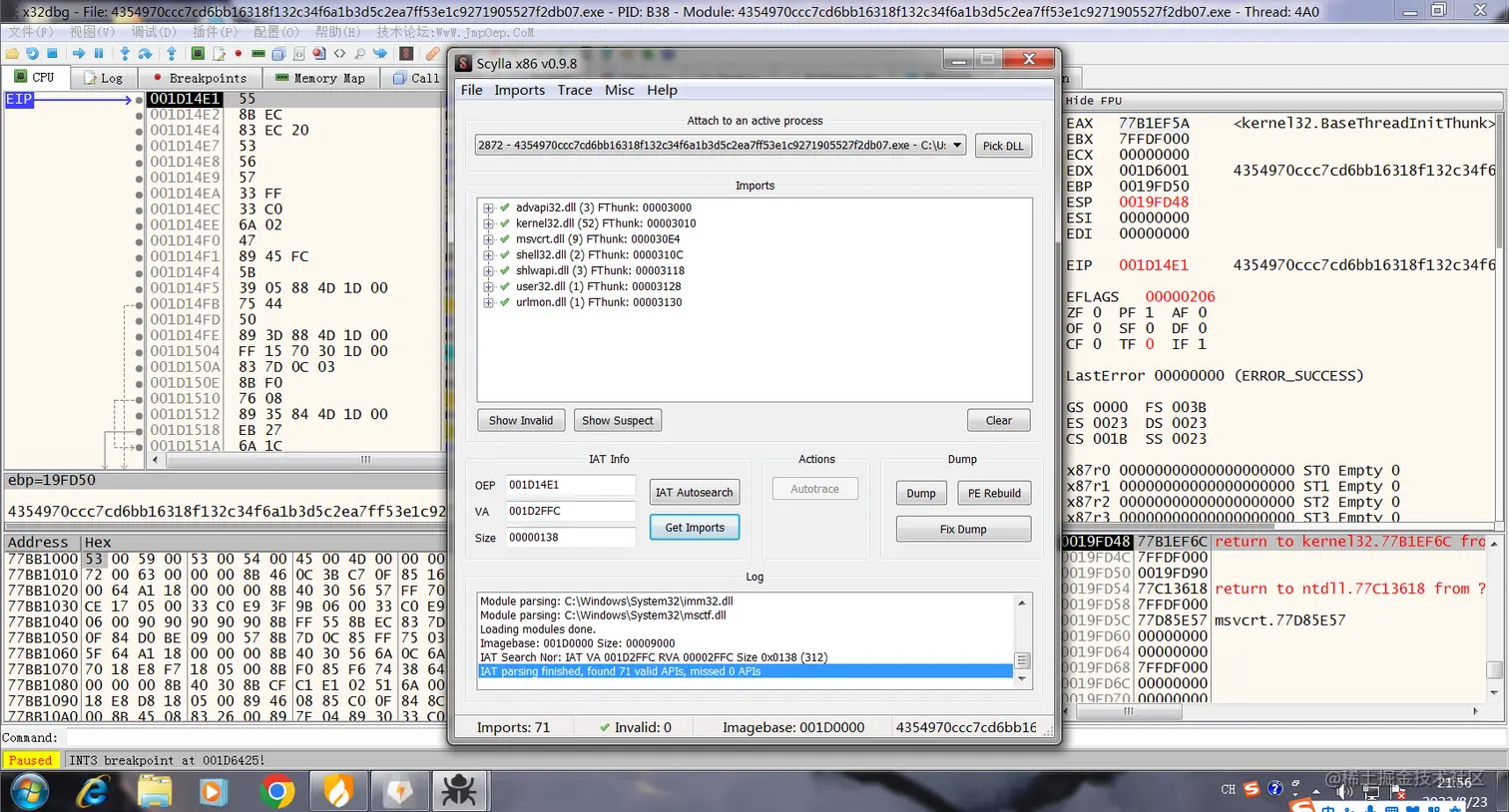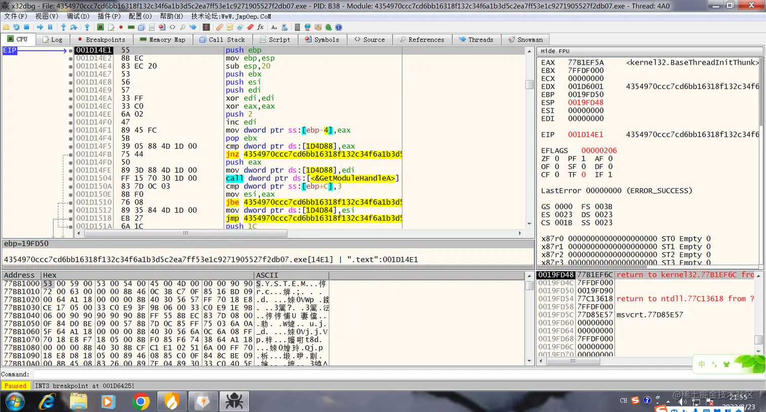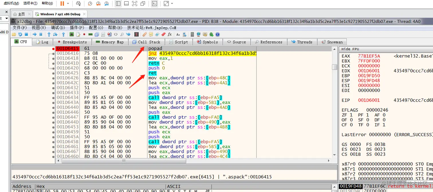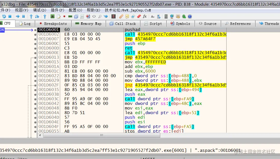 通过x32dbg脱壳: