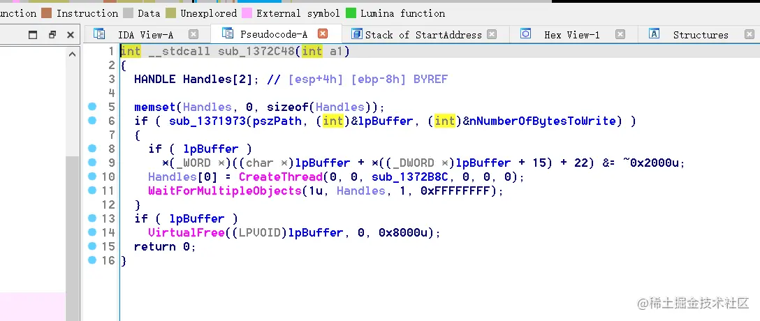 那么这个函数就是拷贝自身到临时路径下,并读取自身内容,返回进入线程回调函数: