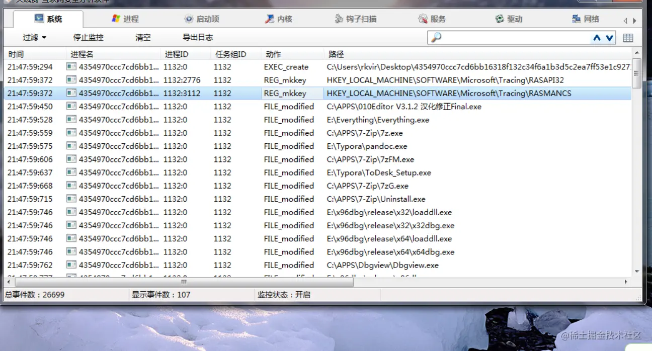 接下来看看火绒剑监控结果: