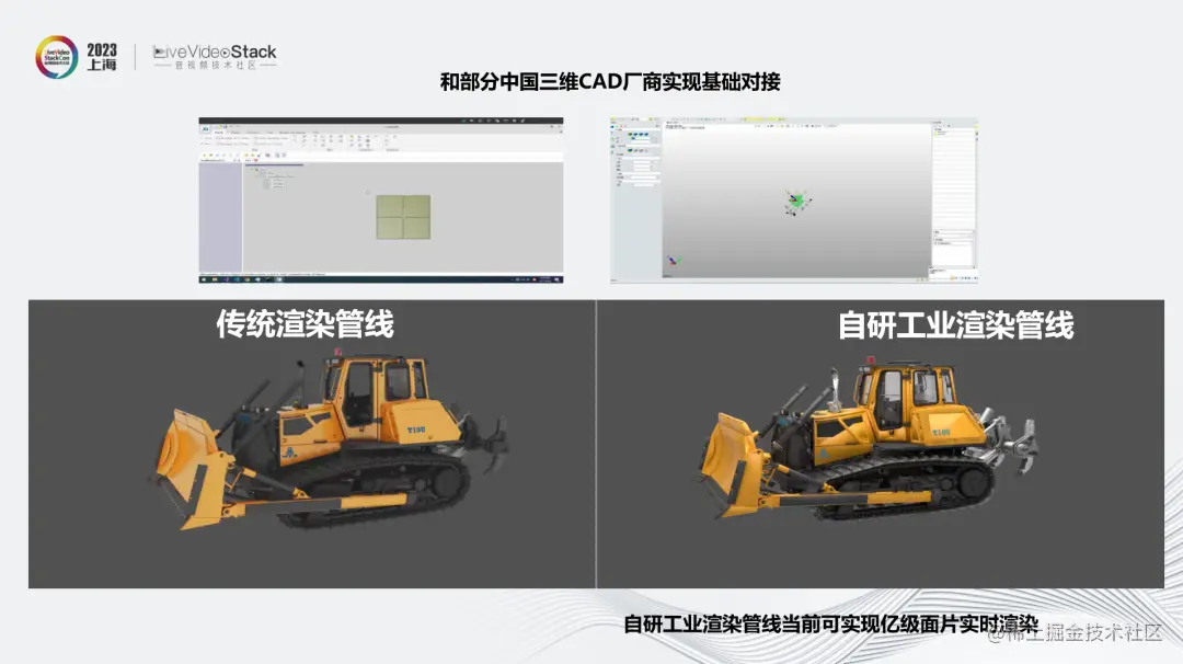 上图展示了我们自研工业渲染管线近期的实时渲染效果,目前它已和部分中国三维CAD厂商完成了集成对接,2024年将陆续实现与其他企业设计软件的对接。