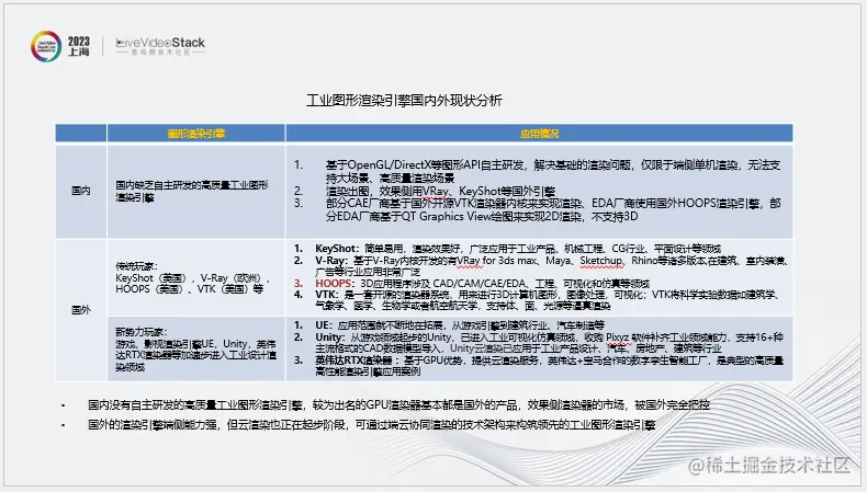 目前国内缺乏自主研发的高质量工业图形渲染引擎,各大企业的自研引擎无法支持高质量和大场景图形渲染。业界较为出名的GPU渲染器基本都是国外的产品(如KeyShot和HOOP等)。