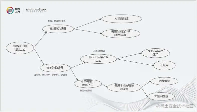 实时渲染场景服务于3D空间、数字孪生、实时设计和游戏等,主要分为现有3D应用无需修改直接上云和经过云原生优化后上云两套方案,分别包括3D应用实时渲染、云应用以及远程渲染、3D空间加速。