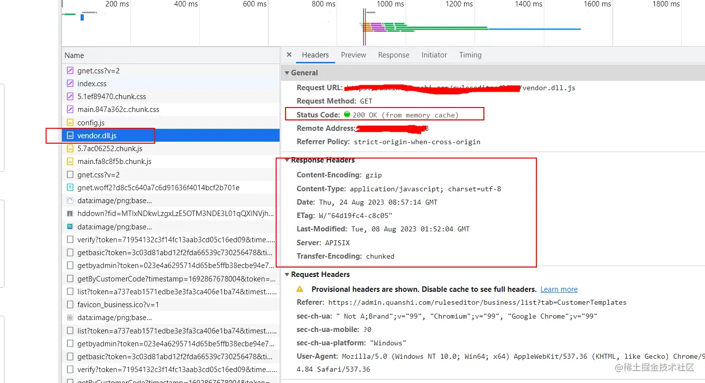 没有走强缓存策略的文件,被缓存进了memory cache? 静浊 2023-08-24 65 阅读1分钟 例如这个vendor.dll.js 第一次请求Response Header中没有cache-control,只有Lst-Modified和ETag,并且Request Header中Cache-control是no-cache; 但是第二次请求是从memory cache中获取的。 所以浏览器会自发缓存js,css,image等静态资源进memory cache或者disk cache,并忽略请求的缓存策略?