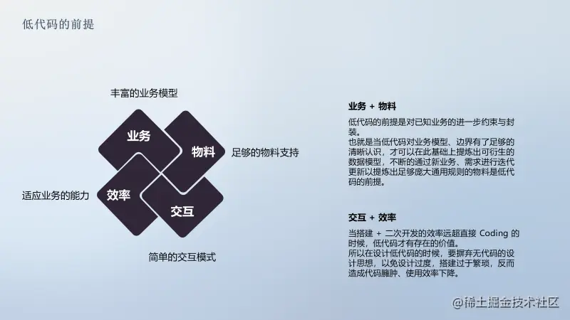 但无论是低代码还是微前端的方案,都需要前端对于业务需求都非常的熟悉,才能更好的发挥这两者的最大作用,如果对于业务不够熟悉,微前端可能将给团队开发带来较为沉重的技术负担,而低代码则会带来额外使用上的心智成本以及反向降低业务交付效率。