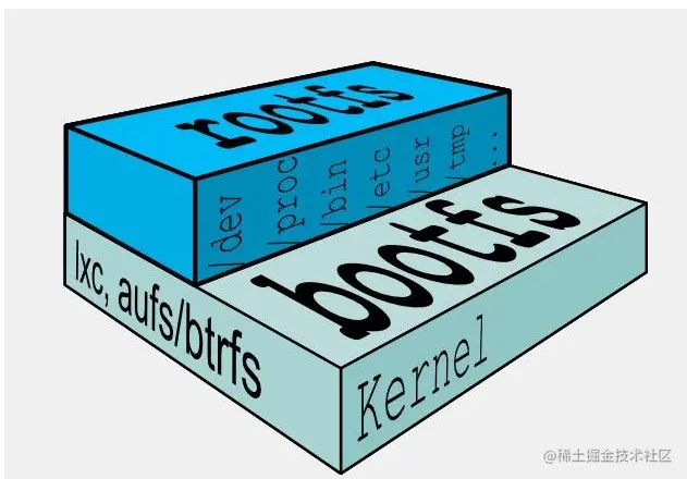 Docker的最底层是bootfs引导文件系统,包含boootloader(boot加载器)和内核,boot加载完成后整个内核就都在内存中了,此时内存的使用权由bootfs转交给系统内核,此时系统会卸载bootfs