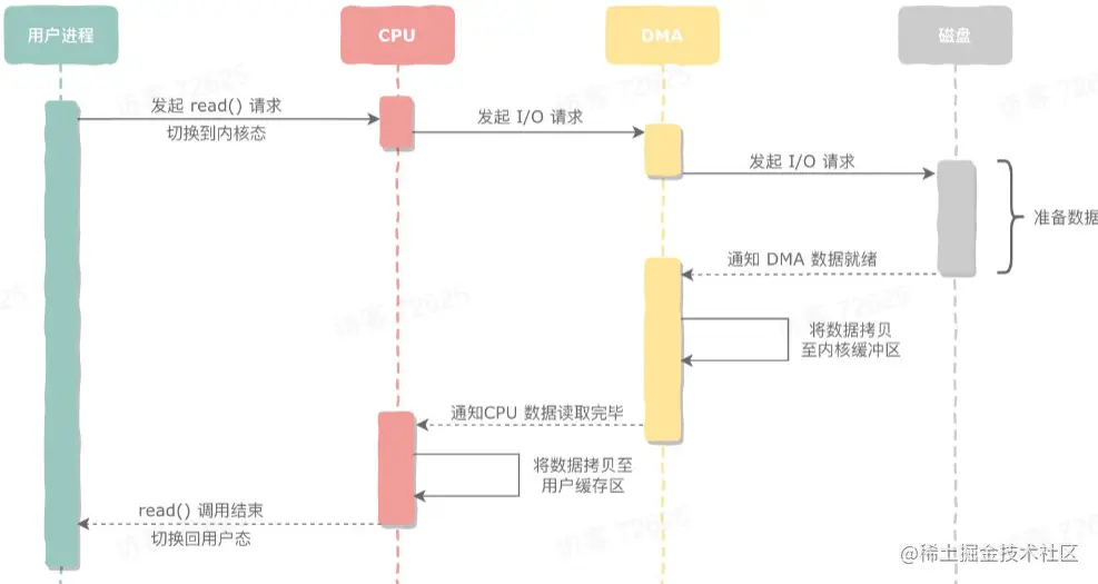 通过DMA实现了数据的批量拷贝,在DMA之前通过轮询和中断的方式会产生大量的系统调用。不过DMA需要硬件的支持。