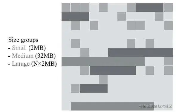 ZGC的Region可以具有如图所示的大、中、小三类容量: