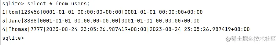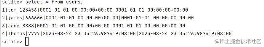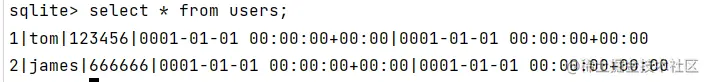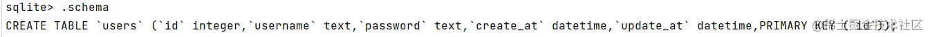 我们发现gorm已经在sqlite中自动创建了一个名叫users的表,我们发现它给User结构体自动加了个s用于表示一个复数的数据库名。