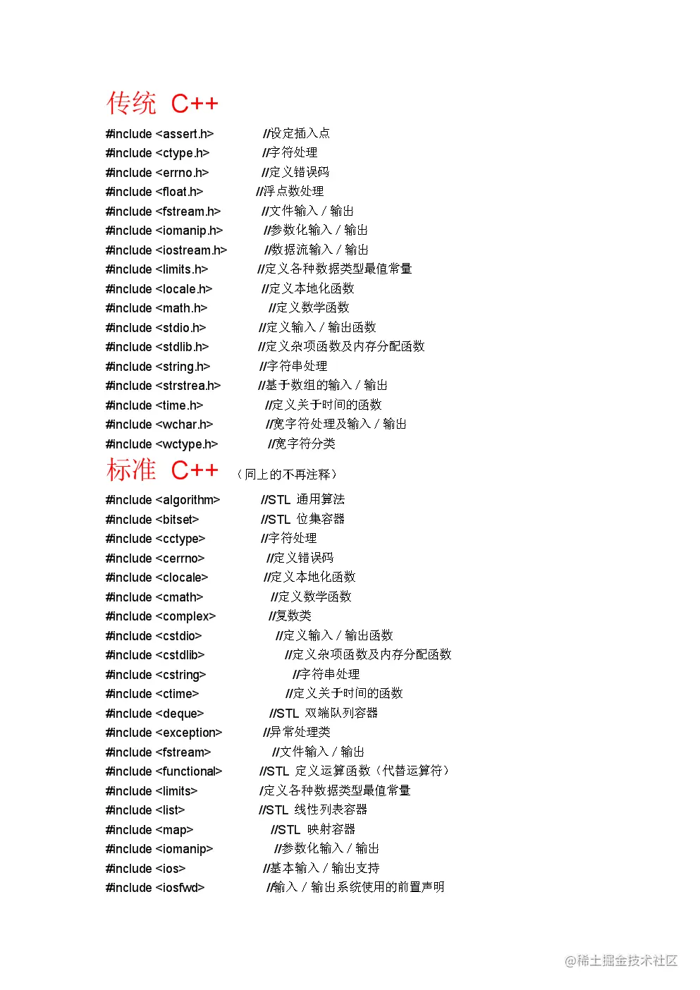 注意:在标准化的过程中,库中有些部分的细节被修改了,所以旧的头文件和新的头文件不一定完全对应。