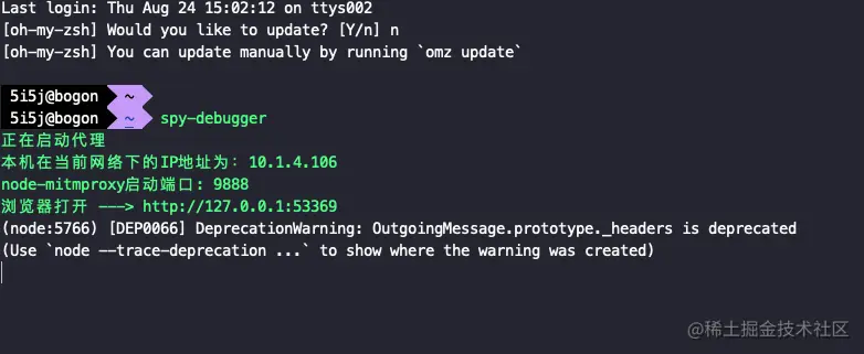 终端里面执行 spy-debugger,浏览器会打开一个页面