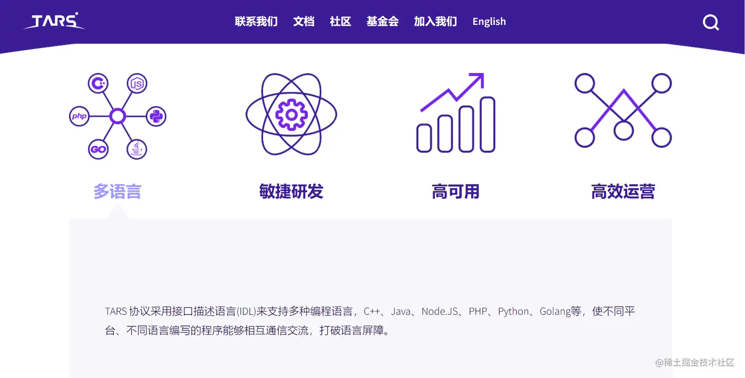 Tars是腾讯从2008年到今天一直在使用的后台逻辑层的统一应用框架TAF(Total Application Framework) 。该框架为用户提供了涉及到开发、运维、以及测试的一整套解决方案,帮助一个产品或者服务快速开发、部署、测试、上线。可快速用微服务的方式构建自己的稳定可靠的分布式应用,并实现完整有效的服务治理。