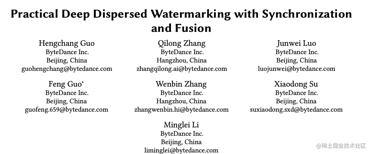 字节跳动产品安全-多媒体与AI安全团队在多媒体数字水印领域的研究论文《Practical Deep Dispersed Watermarking with Synchronization and Fusion 》,于近日入选多媒体领域国际顶会ACM MM 2023。