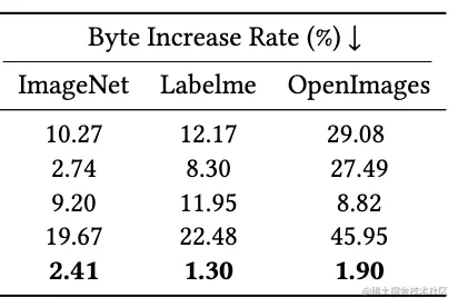 - 图像文件体积增长率更低:图片的分辨率越来越大,对存储空间的影响也越来越大。而本方案由于对图片的修改更少(<=20%面积),因此文件大小的比特增长率更低、对存储空间的影响更小。