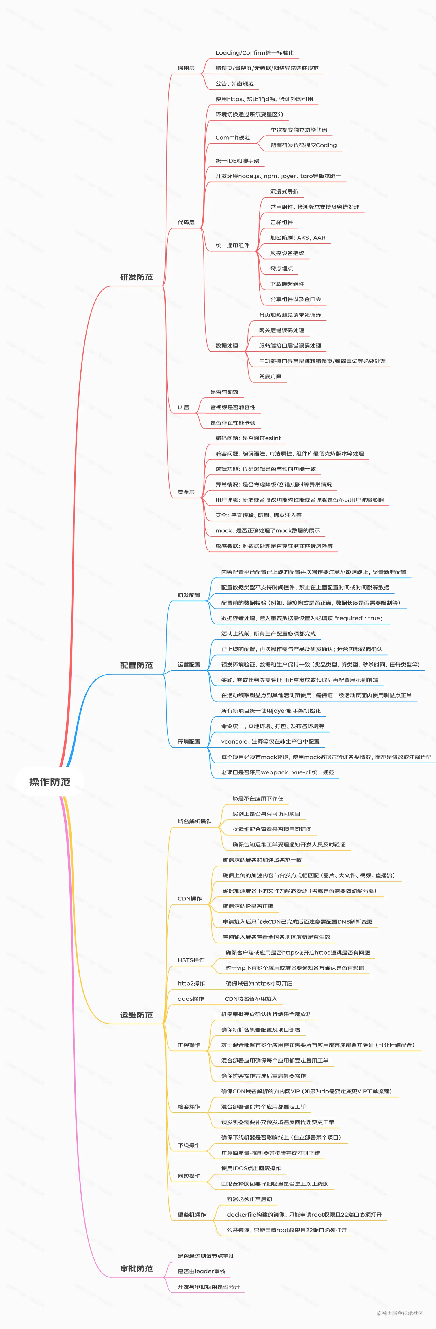 主要包含了四大类别的防范:研发防范、配置防范、运维防范和审批防范。