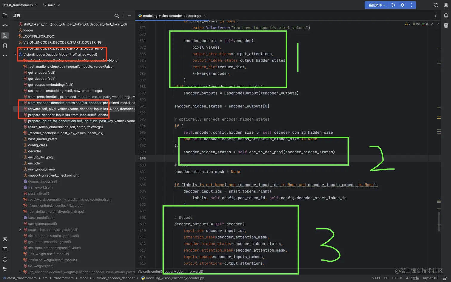 vit来作为encoder部分,输出encoder_hidden_states,绿色部分1。 - 使用