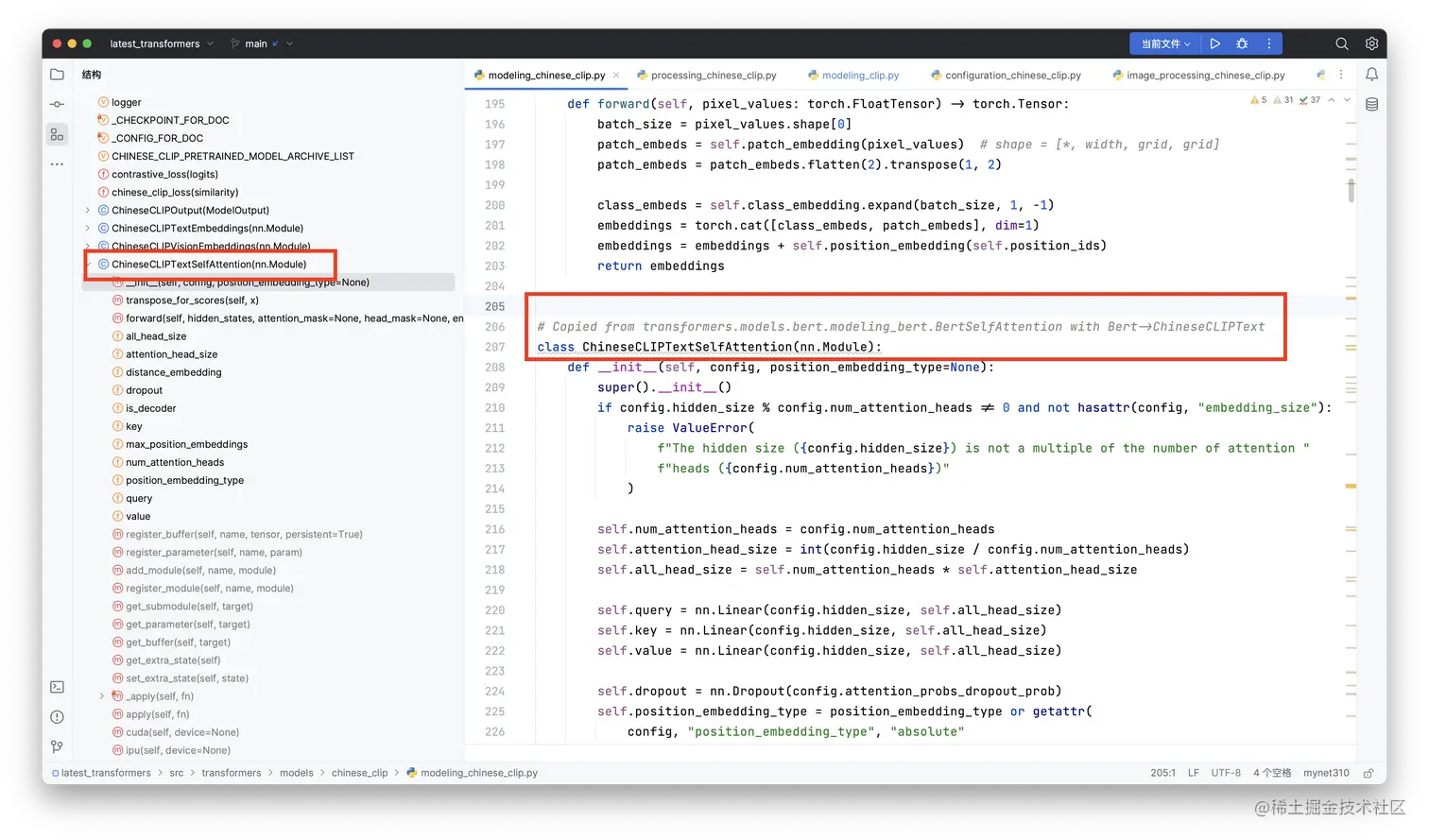 后来,我研究了一下transformers包里面的chinese-clip模型代码。我发现,chinese-clip相对于clip