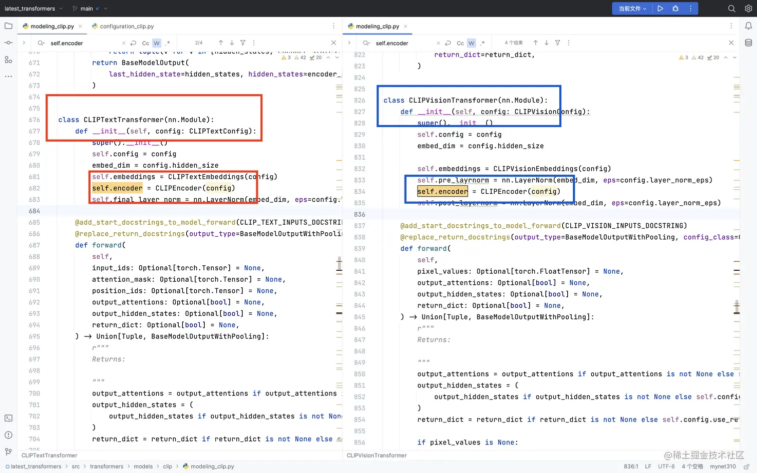 。就是把常规的CLIPTextTransformer换成了bert版本的。啊对,这就破案了。这个奉上代码截图。