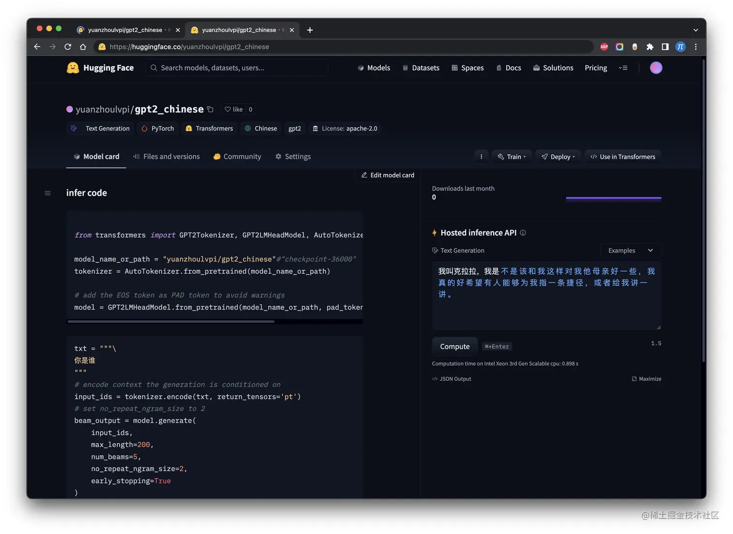 "yuanzhoulvpi/gpt2_chinese"模型。 - 最后就是把两个模型通过
