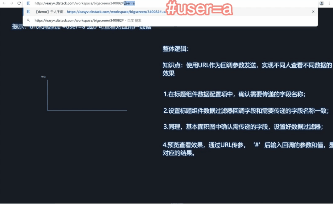 4.预览查看效果,通过URL传参,“#” 后输入回调的参数和值,显示对应的结果