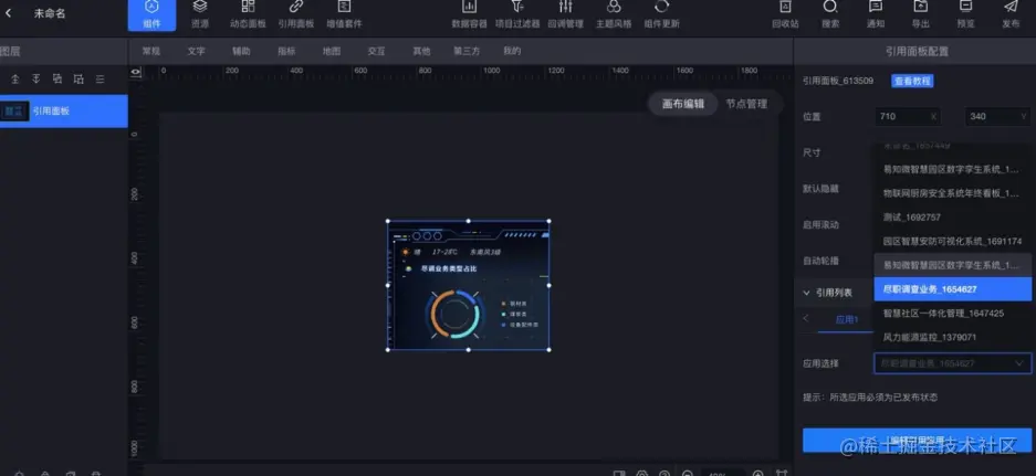 引用面板可理解为iframe的变形。iframe嵌套外部url,展示跳转后的页面;引用面板支持嵌到多个EasyV平台内部大屏,在当前大屏展示。