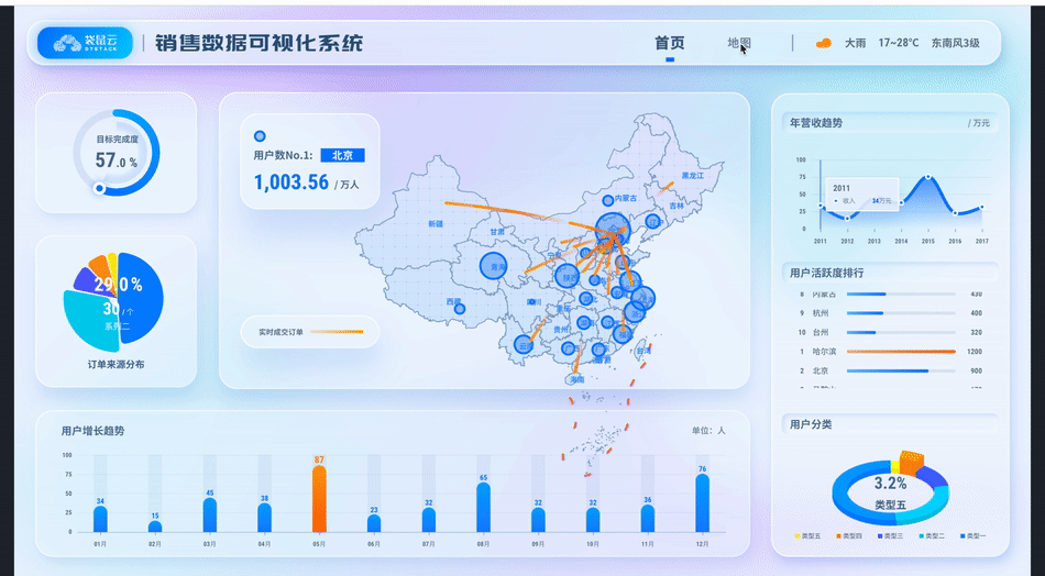 在可视化界面的设计中,各版块并不是独立的,而是相辅相成。因此,在数据可视化大屏项目中,场景可视化大屏交互组件也就必不可少。