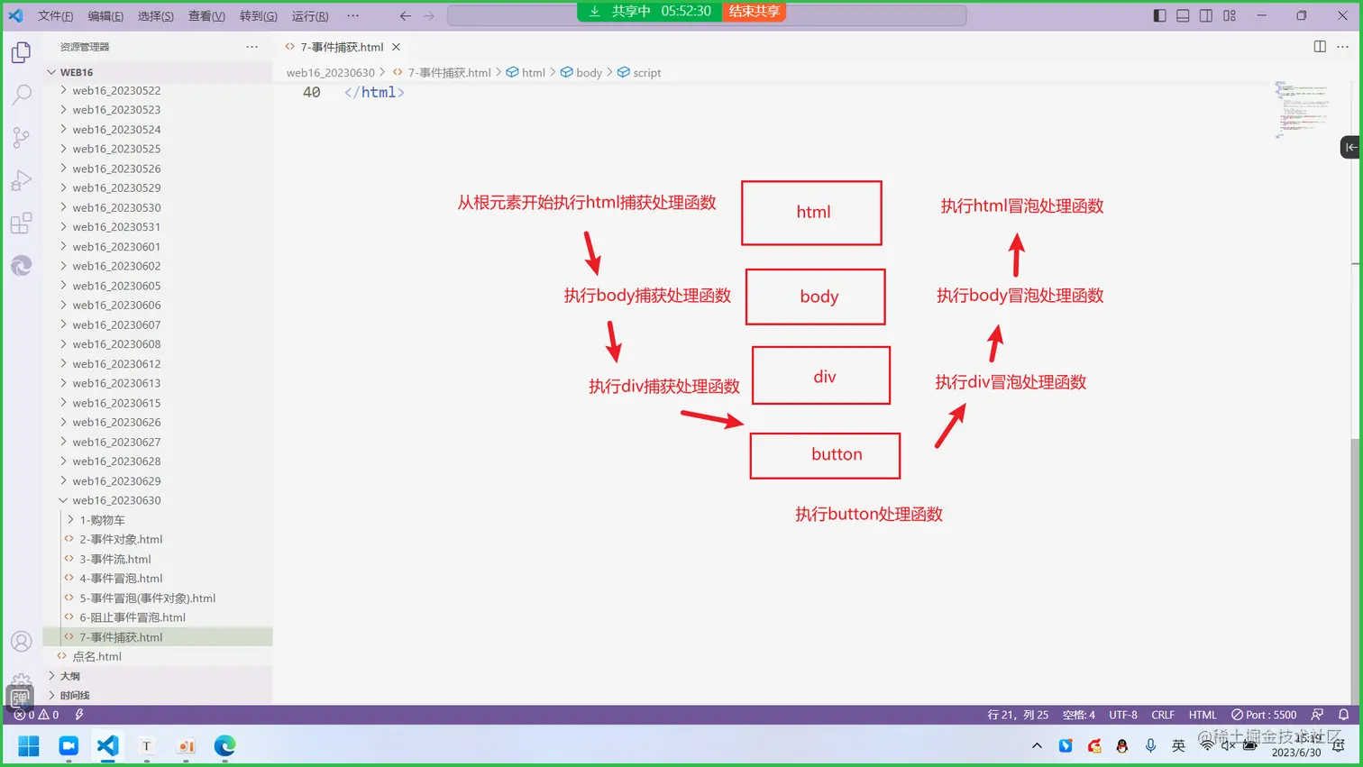 - 掌握事件对象的使用,理解事件流及DOM事件的传播阶段,掌握浏览器默认行为的阻止方式,能够利用事件委托提高程序可维护性(***)
