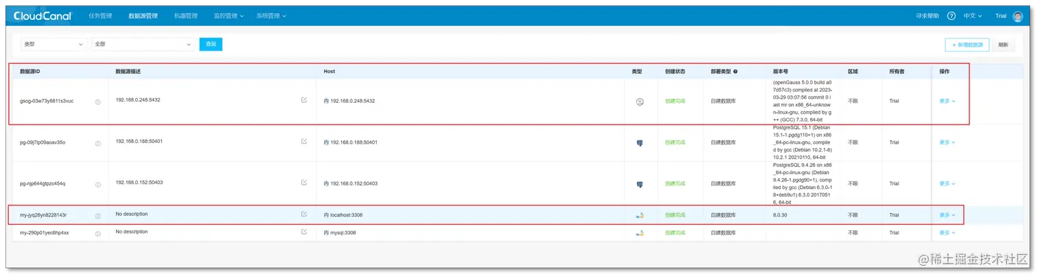 - 登录 CloudCanal ,添加 OpenGauss 和 MySQL